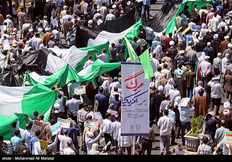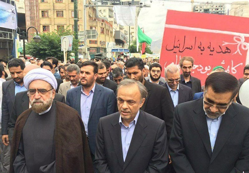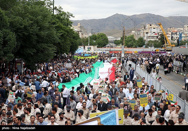 مردم روزهدار استان تهران همزمان با سراسر کشور از دقایق ابتدایی صبح امروز در مراسم روز جهانی قدس حاضر شدند و با شعارهای «مرگ بر آمریکا» و «مرگ بر اسرائیل» انزجار خود از اقدامات رژیم غاصب صهیونیستی را به نمایش گذاشتند.شعار مراسم روز جهانی قدس امسال «روز جهانی قدس، شکست معامله قرن، تثبیت آرمان فلسطین» است که حضور پرشور مردم در این راهپیمایی جهانی ضمن شکست مثلث آمریکایی-صهیونیستی- سعودی، عزم ملت فلسطین برای بازگشت به سرزمینهای اشغالی و مادری خود را در مقیاس جهانی دوچندان میکند.