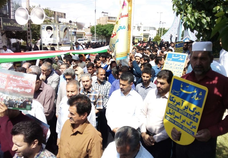 به گزارش خبرگزاری تسنیم از مشهدمقدس، راهپیمایی روز قدس در سراسر کشور از ساعتی قبل آغاز شده و راهپیمایان برائت خود را از استکبار جهانی اعلام میکنند.