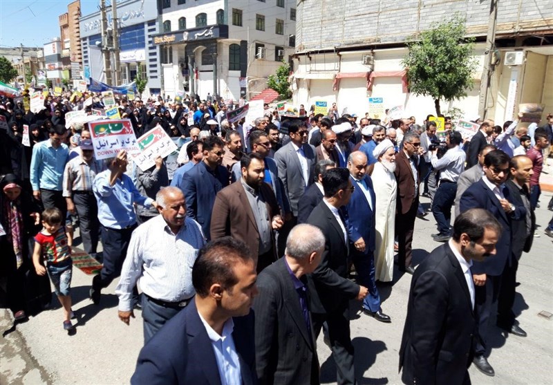 راهپیمایی روز قدس همزمان در شهر کرمانشاه از میدان انقلاب آغاز شد و راهپیمایان در مقابل مسجد جامع تجمع میکنند و حجتالاسلام سید مسعود معصومی لاری در جمع راهپیمایان کرمانشاهی سخنرانی میکند.