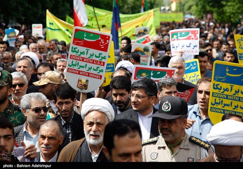 مردم مؤمن و‌ روزه‌دار این شهرستان با حمل شعارنوشته‌هایی آمده‌اند بگویند روز قدس روز بیداری و نمایش قدرت امت اسلام در برابر مستکبران است.