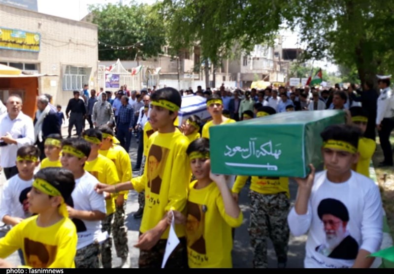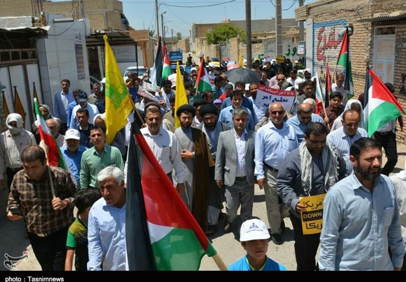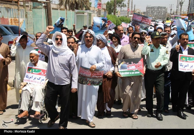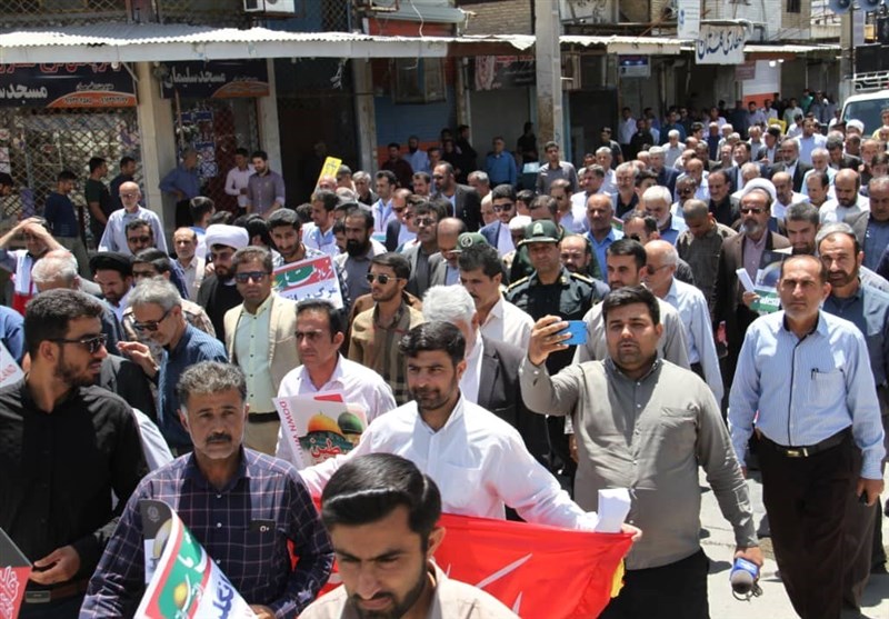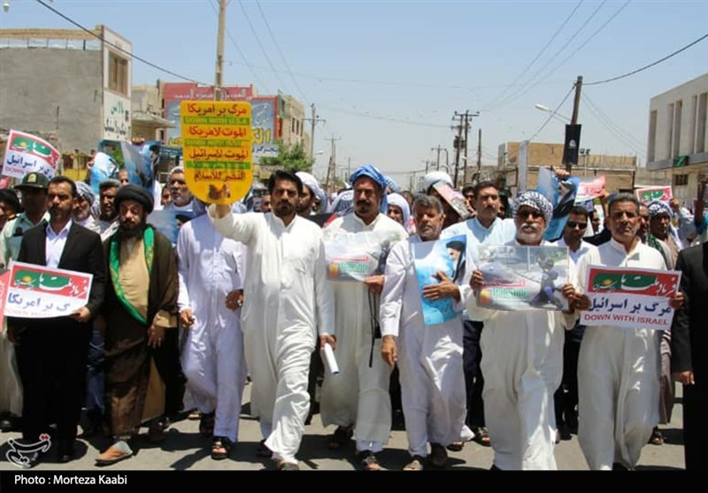 مردم استان خوزستان با زبان روزه لبیک گویان به ندای حق امام راحل و رهبر معظم انقلاب اسلامی با حضور در راهپیمایی روز قدس صحنهای ماندگار برای نقش بر آب کردن نقشههای شوم دشمنان اسلام همچنین دفاع از مردم مظلوم فلسطین را در تاریخ ثبت کردند.
