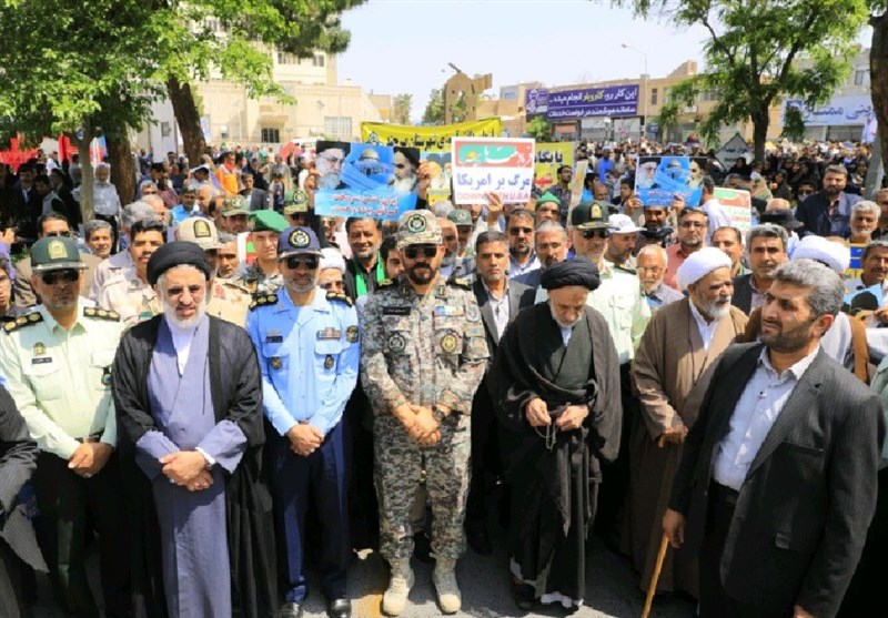 وی گفت: ملت عزیز ایران در راهپیمایی روز قدس با حضور گسترده خود و اعلام شعار "مرگ بر اسراییل" و "مرگ بر آمریکا" جنایات رژیم صهیونسیتی و استکبار جهانی را محکوم کردند چون دفاع از مظلوم به خصوص مردم مضلوم فلسطین بالاترین عبادت است.