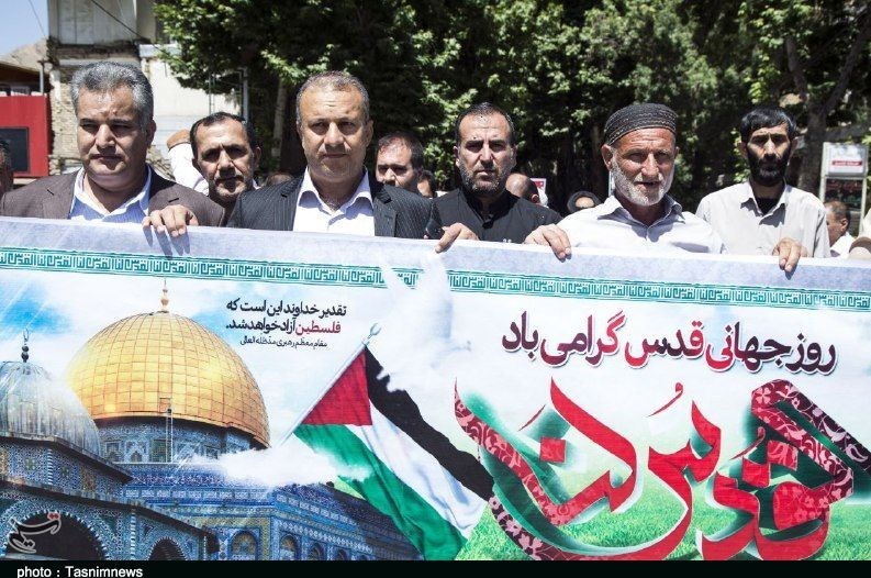 به گزارش خبرگزاری تسنیم از خرمآباد، مردم لرستان امروز در آخرین جمعه ماه مبارک رمضان با حضور پرشور در راهپیمایی روز قدس، انزجار خود را از رژیم اشغالگر قدس و حمایت از انتفاضه مردم فلسطین بهنمایش گذاشتند.