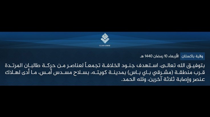 به گزارش دفتر منطقهای خبرگزاری تسنیم، عملیاتهای نیروهای امنیتی و پلیس مبارزه با تروریسم پاکستان در ماه جاری علیه حضور گروه تروریستی داعش از آنجا دوباره آغاز شد که این گروه از طریق خبرگزاری رسمی خود (اعماق) در بیانیه ای از تشکیل حکومت اسلامی و خلافت خود در کشور پاکستان در تاریخ 22 اردیبهشت ماه گذشته پس از قتل یکی از نیروی های پلیس راهنمایی و رانندگی در منطقه مستونگ بلوچستان، خبر داد.