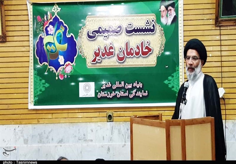 به گزارش تسنیم در نشست صمیمی خادمان غدیر حجتالاسلام والمسلمین موسویفرد نماینده ولیفقیه در استان خوزستان و امام جمعه اهواز، غلامرضا شریعتی استاندار استان و سردار سرتیپ حسن شاهوارپور فرمانده سپاه حضرت ولیعصر(عج) خوزستان حضور داشتند.