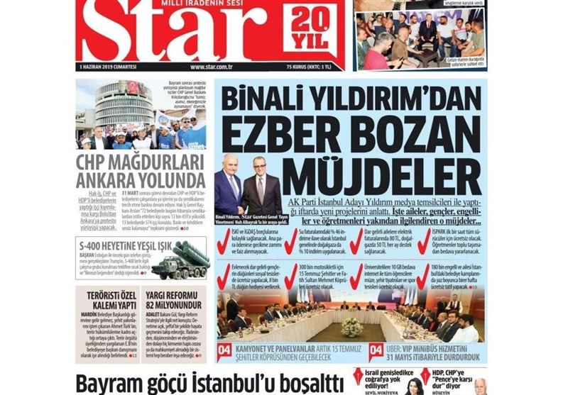 به گزارش گروه بین‌الملل خبرگزاری تسنیم، بسیاری از روزنامه‌های ترکیه، امروز در عکس و تیتر صفحه نخست، تداوم رقابت انتخاباتی در استانبول و موضوع اس 400 را برجسته کرده‌اند.