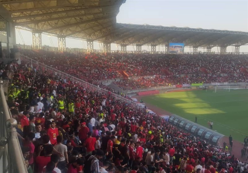 * تمام سکوهای ورزشگاه به جز 20 هوادار داماشی که با پرچم این تیم در ورزشگاه حضور یافتند، یکدست قرمزپوش شده است.