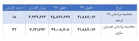 جداول همسانسازی و افزایش حقوق بازنشستگان