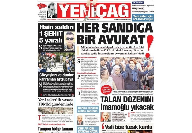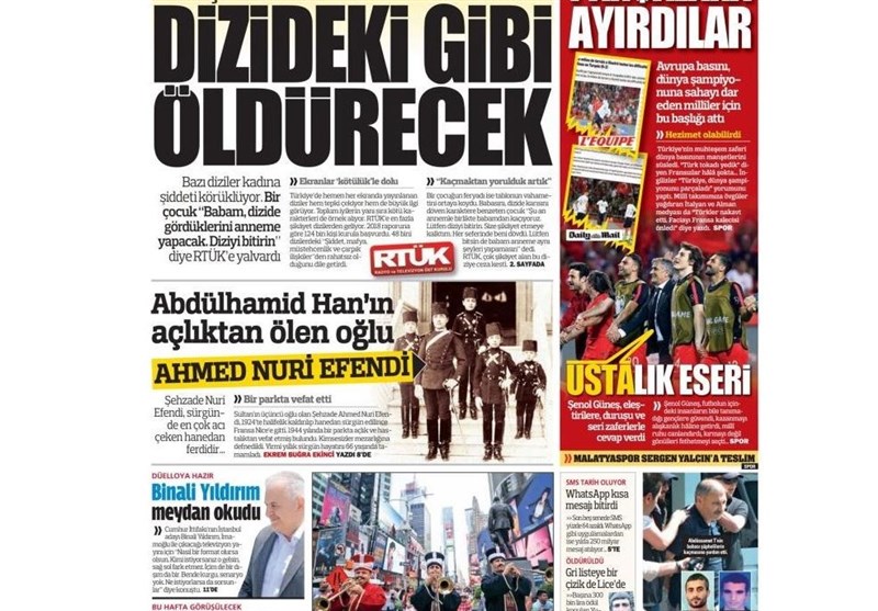 به گزارش گروه بین‌الملل خبرگزاری تسنیم، بسیاری از روزنامه‌های ترکیه، امروز در عکس و تیتر صفحه نخست، رقابت انتخاباتی در استانبول و بازتاب شکست تیم ملی فوتبال فرانسه در برابر تیم ملی فوتبال ترکیه در رسانه‌های اروپا را برجسته کرده‌اند.