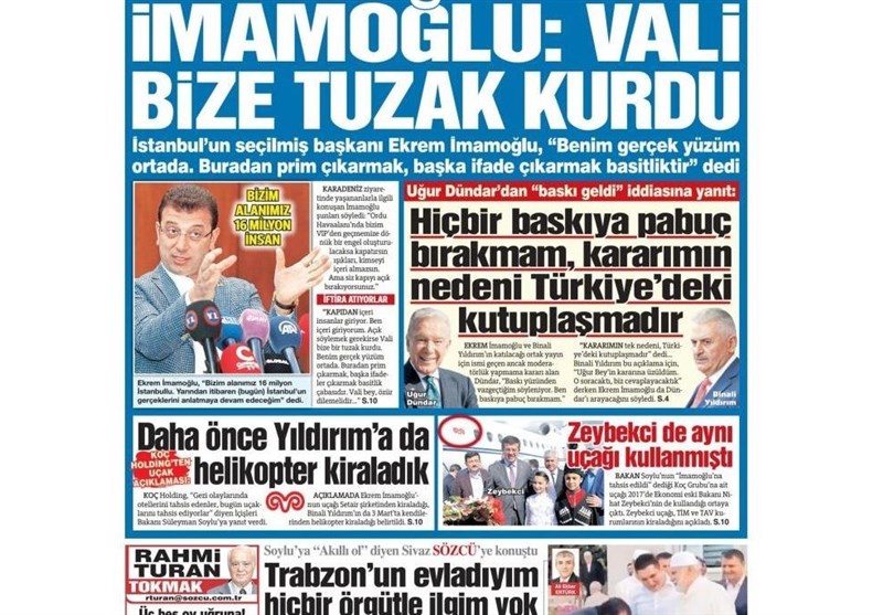 رقابت‌های انتخاباتی استانبول٬ تیتر مشترک اغلب روزنامه‌های امروز ترکیه است.