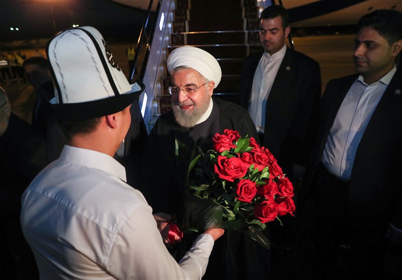 روحانی پنج‌شنبه‌شب و با استقبال نخست وزیر قرقیزستان وارد فرودگاه بیشکک پایتخت این کشور شد.