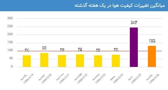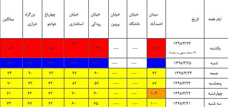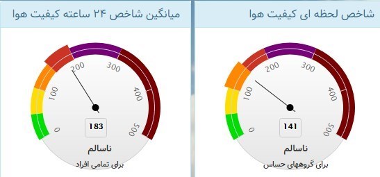 براساس شاخص آلودگی هوا، این شاخص از صفر تا 50 هوای پاک، 51 تا 100 هوای سالم، 101 تا 150 ناسالم برای گروههای حساس، 151 تا 200 ناسالم برای عموم، 201 تا 300 بسیار ناسالم، 301 تا 500 خطرناک را نشان میدهد.