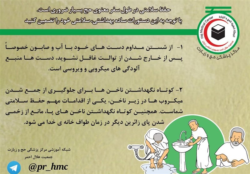به گزارش گروه اجتماعی خبرگزاری تسنیم، در شبکه آموزشی مرکز پزشکی حج و زیارت جمعیت هلال احمر توصیههایی برای سلامت زائران حج تمتع در حوزه تغذیه و بهداشت بیان شده است: حجاج باید در طول سفر حج به مسائل مختلفی از جمله تغذیه و بهداشت توجه ویژه داشته باشند زیرا این موارد میتواند در بسیاری از مواقع منجر به ایجاد بیماری برای حجاج شود. به طور مثال به دلیل این که بسیاری از حجاج ایرانی مُسن هستند، امکان ابتلا به بیماریهایی مانند اسهال در این افراد وجود دارد. بنابراین لازم است در سفر حج به نکات بهداشتی و تغذیهای توجه شود.