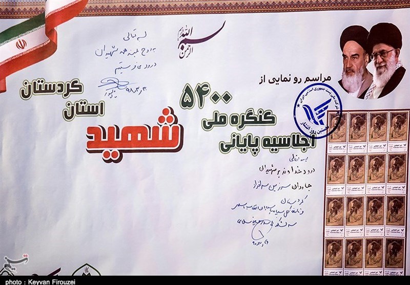 در این مراسم از تمبر یادبود کنگره 5400 شهید استان و کتاب زندگینامه و معرفی فرماندهان و شهدای کردستان رونمایی شد.