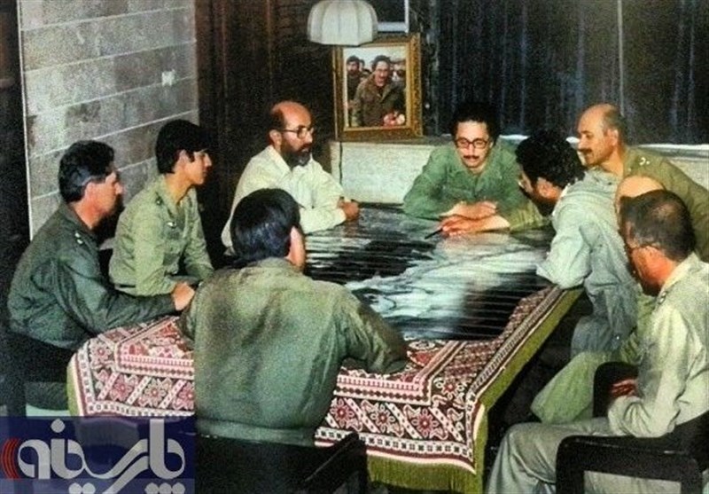 بنیصدر، مصطفی چمران و امیر فلاحی در جلسه اتاق جنگ؛ بنیصدر معتقد بود که باید با دشمن وارد مذاکره شویم، اما چمران معتقد بود با مقاومت پیروز خواهیم شد.
