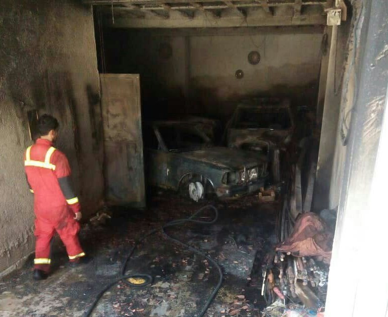 ملکی افزود: بررسیهای اولیه حکایت از آن داشت که مالک به همراه دو فرزند خود در حال تعمیرات خودروها بودند که ناگهان آتشسوزی به وقوع پیوسته و تمام خودروها شعلهور شده بود. آتش در حال سرایت به منزل مسکونی بود که همزمان با رسیدن آتشنشانان، دو مرد جوان (فرزندان مالک) از ساختمان خارج شده و دچار مصدومیتهای جزئی شده بودند.