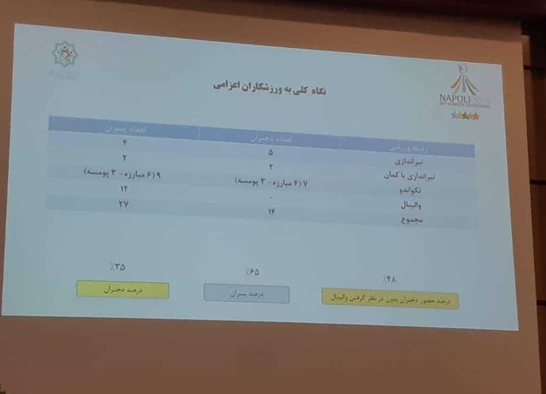 رئیس فدراسیون ورزش دانشگاهی یادآور شد: انتخاب 4 مربی تیم ملی و حضور دو رئیس فدراسیون در کادر سرپرستی قابل توجه است.در این دوره کاروان 50 درصد کاهش داشته است. این تعداد نفرات بضاعت فنی دانشجویان ما است. در این دوره هیئت رئیسه تصمیم گرفت فنیترین و مدال آورترین ورزشکاران اعزام شوند.