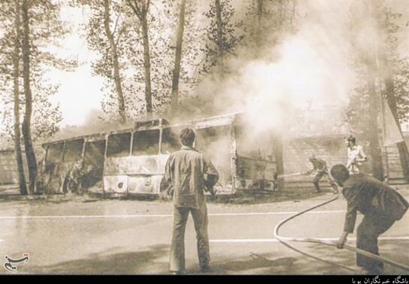 انفجار یک اتوبوس در خیابان توسط منافقین