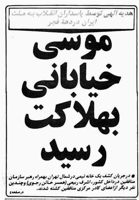 خبر بههلاکترسیدن موسی خیابانی نفر اول سازمان در غیاب مسعود رجوی در ایران