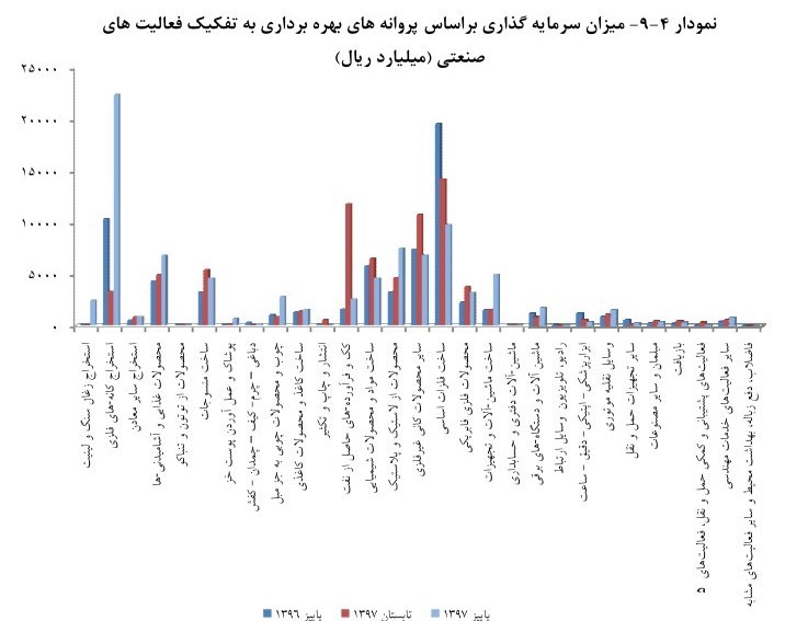 همچنین در پاییز 97 از جموع کل سرمایه گذاری بر اساس پروانه های بهره برداری صنعتی، استخراج کانه های فلزی، ساخت فلزات اساسی و محصولات از لاستیک و پلاستیک بیشترین مقدار را به خود اختصاص داده اند.