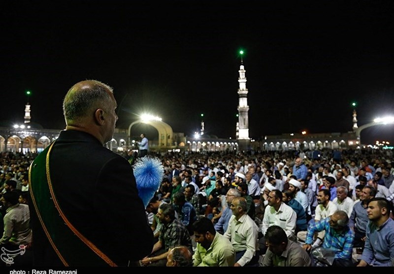 در پایان این مراسم پیکر شهید عشریه بر دستان زائران و مجاوران این مسجد مقدس تشییع شد.