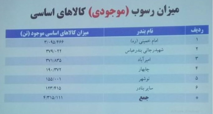 به گزارش خبرنگار اقتصادی خبرگزاری تسنیم، بررسی آمارهای ارائهشده از گمرک بهاستناد آمارهای رسمی وزارت راه و شهرسازی از موجودی انواع کالا در بنادر کشور، تا اواخر خرداد ماه، حدود 4 میلیون و 315 هزار و 111 تن کالای اساسی در بنادر و گمرکات رسوب کرده (موجودی) که عمده آن در بندر امام خمینی است.