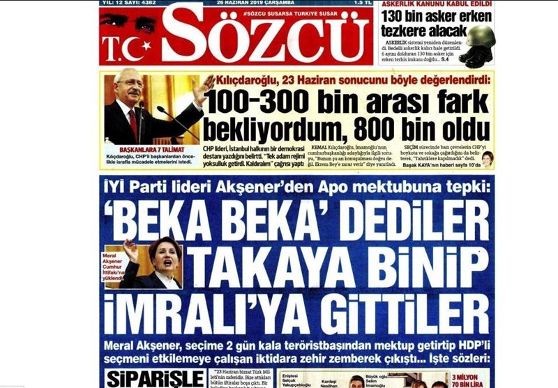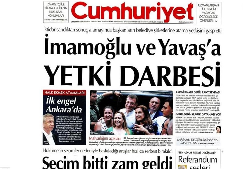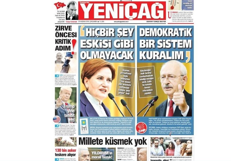 به گزارش گروه بینالملل خبرگزاری تسنیم، بسیاری از روزنامههای ترکیه، امروز در عکس و تیتر صفحه نخست، تحلیل نتایج انتخابات استانبول را برجسته کردهاند.