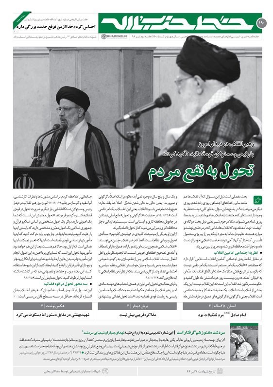 صد و نودمین شماره خط حزب الله با عنوان "تحول به نفع مردم" منتشر شد.