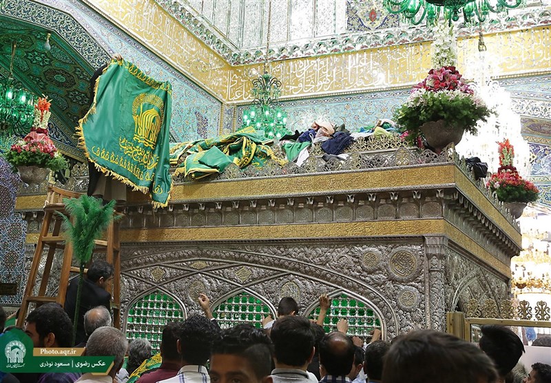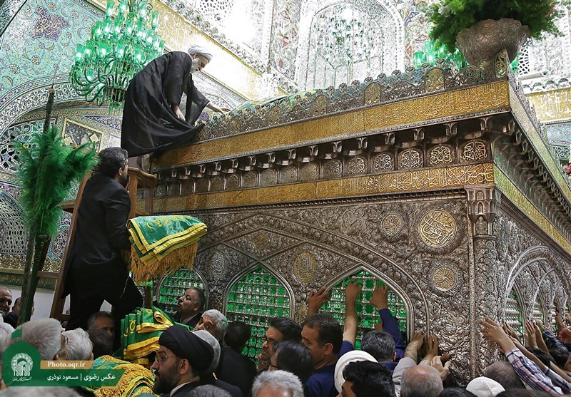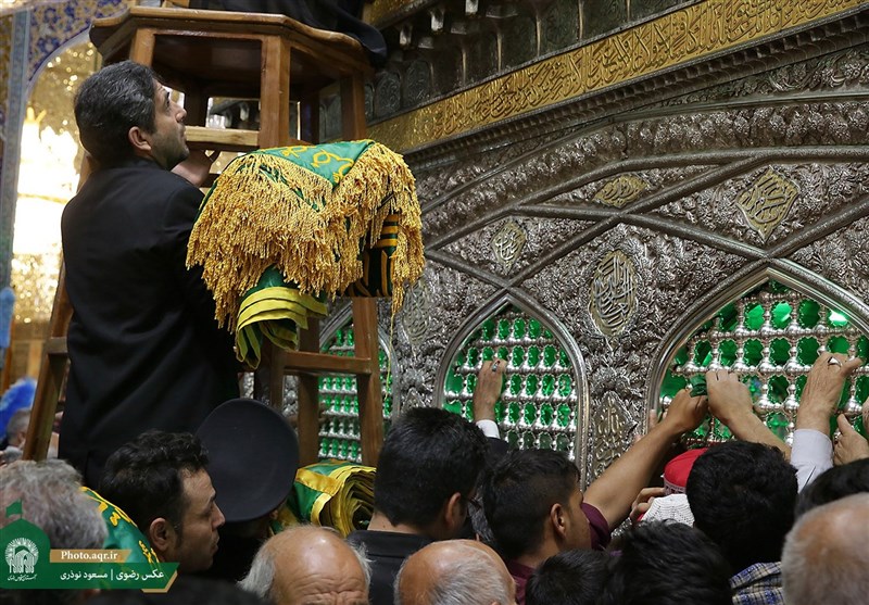 به گزارش خبرگزاری تسنیم از مشهدمقدس، آیین متبرک سازی پرچم‌های زیر سایه خورشید به ضریح حضرت رضا علیه السلام، با حضور خدام حرم مطهر رضوی برگزار شد.