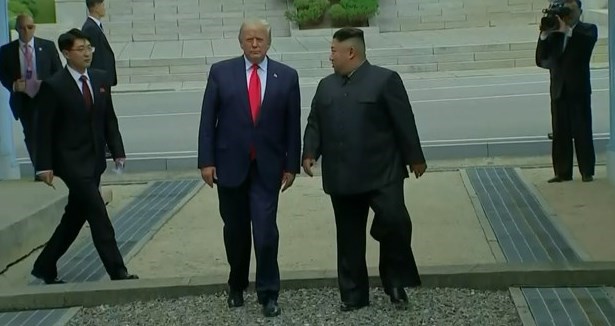 رهبر کره شمالی لحظاتی بعد از ورود ترامپ به خاک کره شمالی به وی گفت: هرگز انتظار ملاقات شما در این مکان را نداشتم. وی در ادامه خطاب به ترامپ گفت: عبور از مرز کره شمالی کار بسیار شجاعانه و تعیین کننده ای بود.