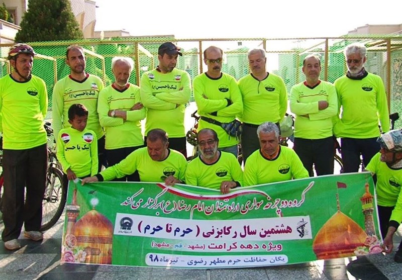 به گزارش خبرگزاری تسنیم از مشهدمقدس، به نقل از آستان نیوز، این مراسم در ورودی باب الجواد(ع) با تجمع گروه دوچرخه سواری ارادتمندان امام رضا(ع) و خادمان بارگاه منور رضوی و زائران حضرت رضا(ع) همراه با مداحی مداحان اهلبیت(ع) و تبرک جستُن از پرچم متبرک رضوی برگزار شد و این گروه توسط خادمان حرم رضوی بدرقه شدند.