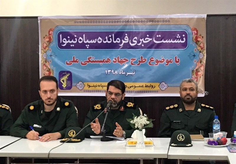 فرمانده سپاه نینوای استان گفت: طرح جهاد همبستگی ملی با مشارکت اصناف، مساجد و بانک‌ها در دستور کار قرار گرفته است. در این طرح هر کسبه یک کالا، هر مسجد یک منزل و هر بانک یک مدرسه را تعهد می‌کند. امروز در استان در زمینه تأمین کالاهای ضروری برای سیل‌زدگان، اشباع هستیم و کمک اصناف نیز باید برای تعمیر و بازسازی منازل مسکونی سیل‌زدگان استفاده شود.