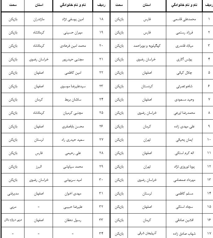 اسامی بازیکنان دعوت شده به شرح زیر است :