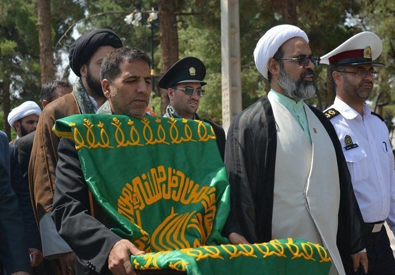کاروان خادمین با گرداندن پرچم سبز گنبد امام رضا (ع)، مردم را به زیارت معنوی و عاشقانه امام مهربانی‌ها دعوت و ارادتمندان اهل بیت (ع) به امام هشتم شیعیان جهان سلام دادند.