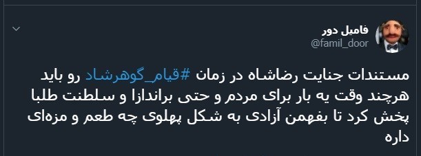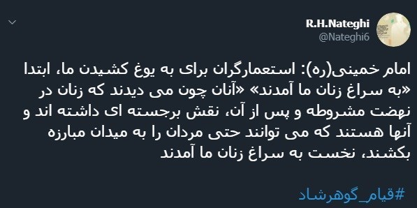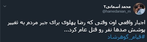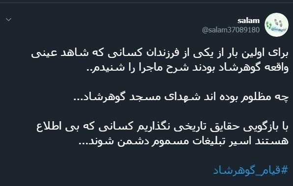 کاربران فضای مجازی واکنش های متفاوتی با هشتگ «قیام_گوهرشاد» نسبت به این فاجعه تاریخی داشتند.