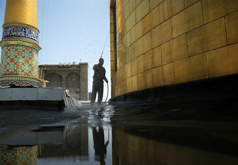 محمدرضا سبزعلی رئیس اداره خدمات عمومی آستان قدس رضوی در مورد تنظیف نقاط مرتفع حرم رضوی اظهار داشت: گروه 30 نفر خادمــان افتخاری از تهران، سالی دو نوبت کار تنظیف و غبارروبی نقاط مرتفع صحنهای مرکزی را بر عهده گرفتهاند و در ایام دهه کرامت و ایام نوروز به مشهدالرضا میآیند و ما را در زمینه غبارروبی نقاط مرتفع یاری میکنند.