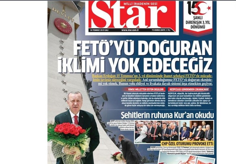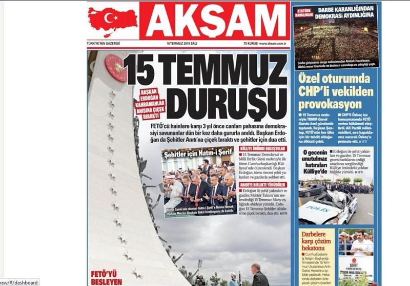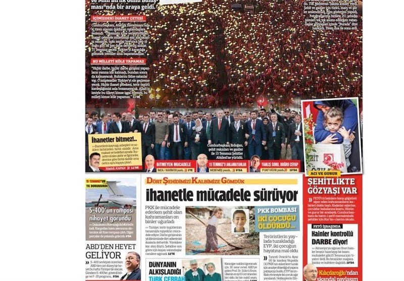 نشریات ترکیه در یک نگاه|سومین سالگرد مقاومت در برابر کودتاگران/ اردوغان: تهدید قندیل را از میان برمی‌داریم