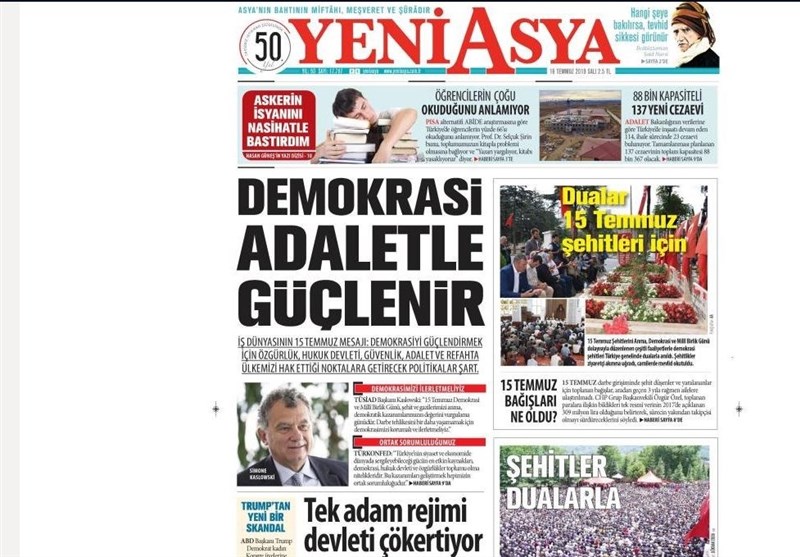 نشریات ترکیه در یک نگاه|324 هزار عملیات علیه گولنی‌ها در 3 سال اخیر/ آمریکا اینجرلیک را از دست می‌دهد