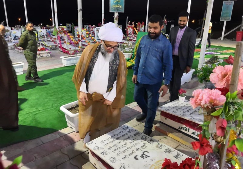 در جریان حضور این کاروان در عراق, پرچم متبرک حرم امام رضا (علیهالسلام) با کاروان زیر سایه خورشید آستان قدس به ریاست آیتالله حیدری عضو مجلس خبرگان در روضةالشهداء مقاومت نجباء در قبرستان وادی السلام نجف اشرف حضور یافت و ضمن ادای احترام به شهدا, فضا را معطر به عطر بارگاه نورانی امام هشتم کرد.