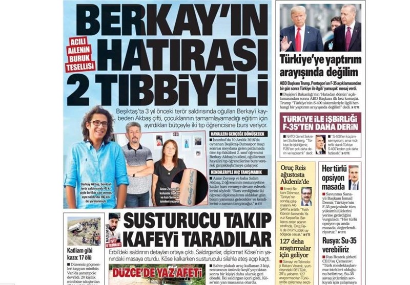 به گزارش گروه بینالملل خبرگزاری تسنیم، بسیاری از روزنامههای ترکیه، اعلام هویت یکی از عوامل حمله تروریستی اربیل را برجسته کردهاند و در کنار آن٬ موضوع پیشنهاد فروش هواپیمای روسیه به ترکیه نیز مورد توجه قرار گرفته است.