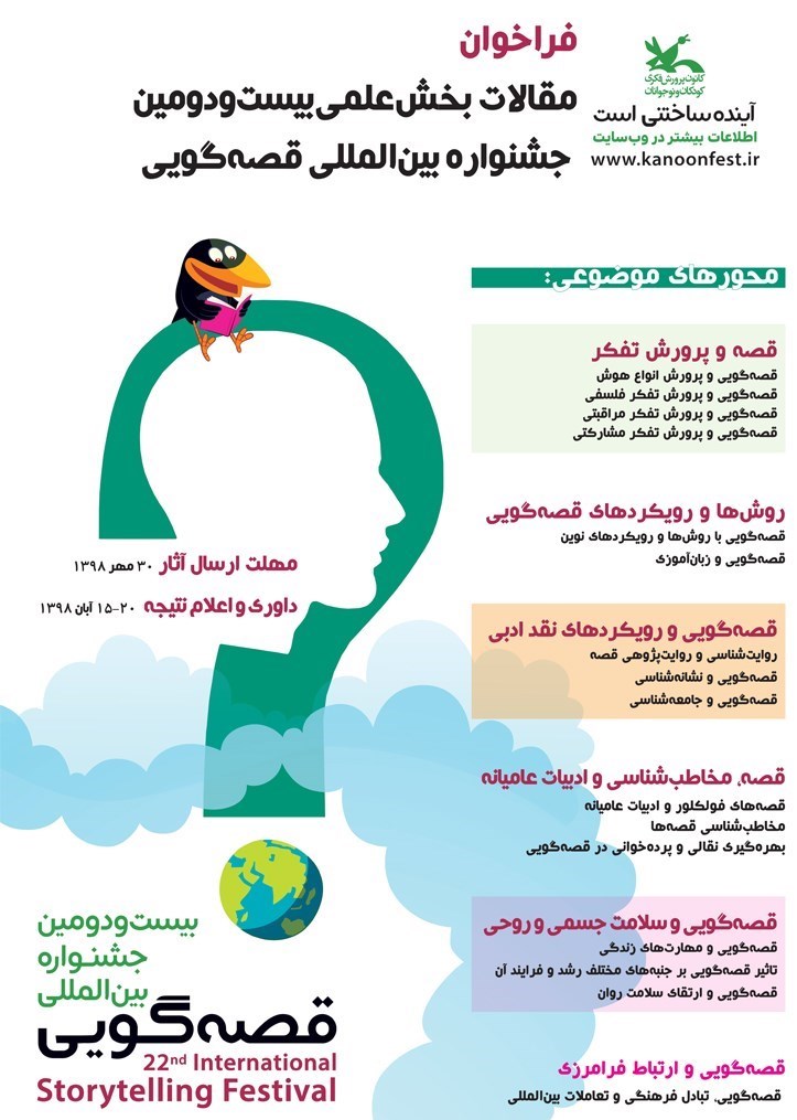 بیستودومین جشنواره بینالمللی قصهگویی کانون همزمان با شب یلدا با شعار «آینده ساختنی است» برگزار خواهد شد.
