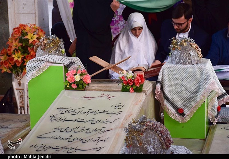 زوج طلبه کرمانی جشن ازدواج خود را در جوار قبور شهدای گمنام برگزار کردند.
