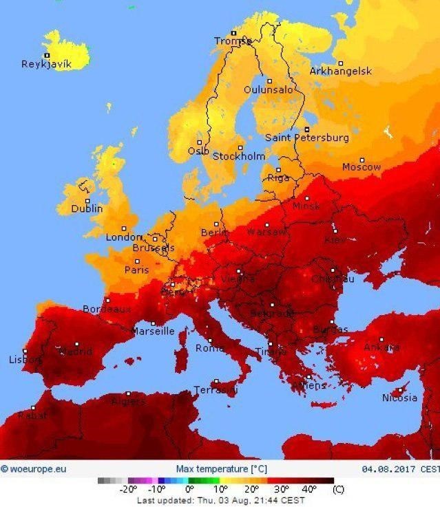 پاریس و برخی شهرهای دیگر فرانسه در انتظار افزایش گرما به بیش از 40 درجه سانتیگراد هستند؛ گرما در آلمان، بلژیک، هلند، اسپانیا، لوکزامبورگ و سوئیس همچنان شدید خواهد بود و در تمامی این مناطق انتظار میرود درجه حرارت از 40 درجه بگذرد!