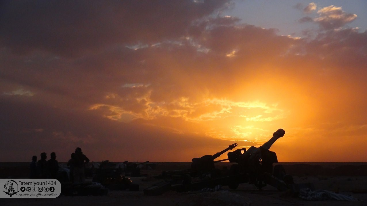 تصویری از لحظه غروب در توپخانه فاطمیون در منطقه حلب سوریه: