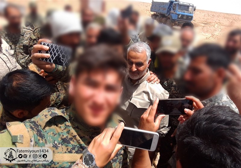 عکسهای یادگاری سردار قاسم سلیمانی فرمانده سپاه قدس پاسداران انقلاب اسلامی، در جمع رزمندگان فاطمیون: