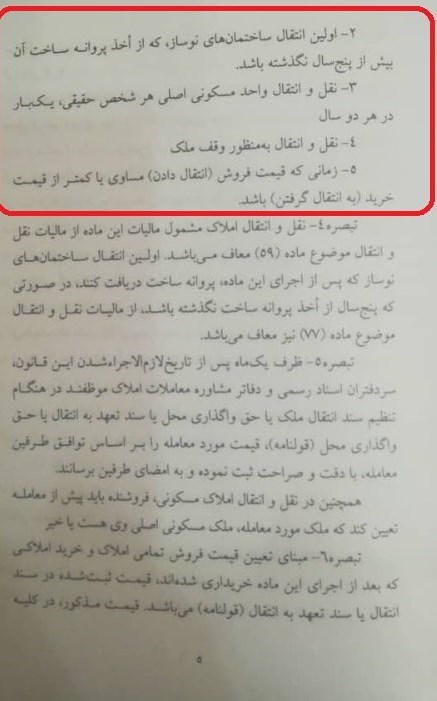 اولین انتقال املاکی که قبل از اجرای این قانون خریداری شده باشند