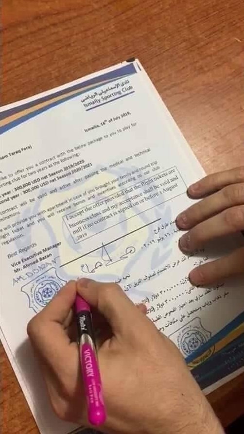 این رسانه عراقی، تصویر قرارداد هافبک 23 ساله و پیشین آبیهای پایتخت با باشگاه مصری را منتشر کرد. این در حالی است که باشگاه اسماعیلی این خبر را هنوز به صورت رسمی اعلام نکرده است.