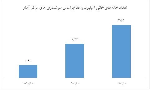 لازم به ذکر است افزایش تعداد خانههای خالی در سالهای اخیر کاملاً مشهود است. واحدهایی که عمدتاً در مناطق گرانقیمت قرار گرفتهاند و بهامید افزایش بیشتر قیمتها نه در بازار خرید و فروش مسکن عرضه شده و نه اجاره داده میشود. بررسی سرشماری نفوس و مسکن در سال 1395 توسط مرکز آمار نشان میدهد تعداد واحدهای مسکونی خالی کشور 2.58 میلیون است، این در حالی است که تعداد این واحدها در سرشماری نفوس و مسکن سال 1390، 1.6 میلیون واحد بوده است.