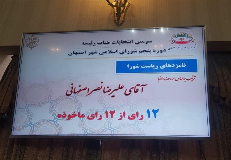 پس از آن تنها نامزد ریاست شورای شهر اصفهان علیرضا نصر اصفهانی بود که او با کسب 12 رأی از مجموع 12 رأی مأخوذه، به عنوان رئیس شورا انتخاب شد.