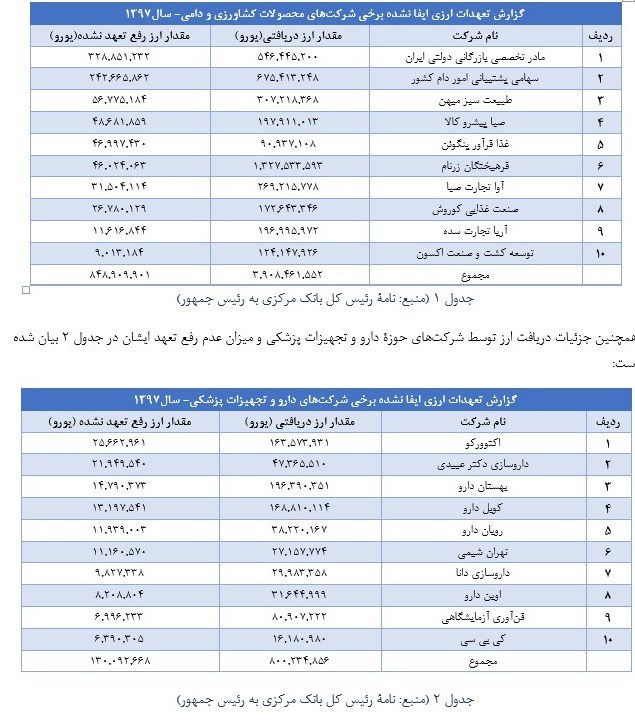 رئیسکل بانک مرکزی در این مکاتبه، 20 شرکت را به عنوان متخلف ارزی معرفی کرد چراکه این شرکتها در مجموع 4 میلیارد و 700 میلیون یورو ارز دولتی جهت واردات دریافت کردهاند ولی پس از گذشت مهلت قانونی برای واردات کالا به کشور، هنوز به ازای 1 میلیارد یورو از این مبلغ هیچ کالایی وارد کشور نشده است.